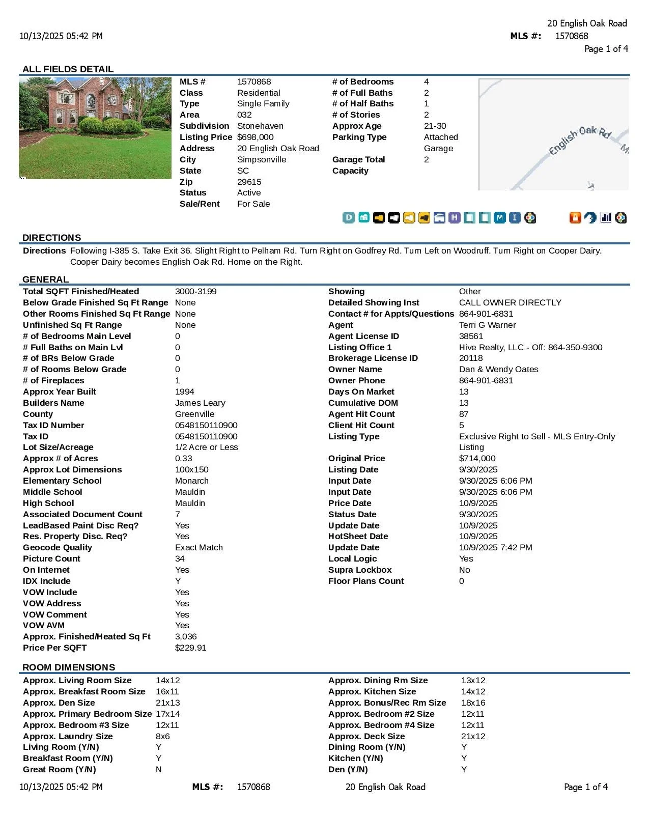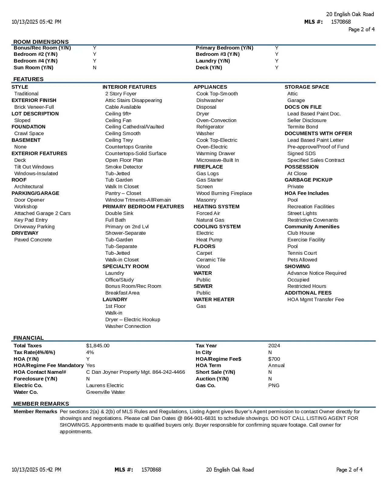 MLS #1570868 - 20 English Oak Road, Simpsonville, SC 29681 - $689,000