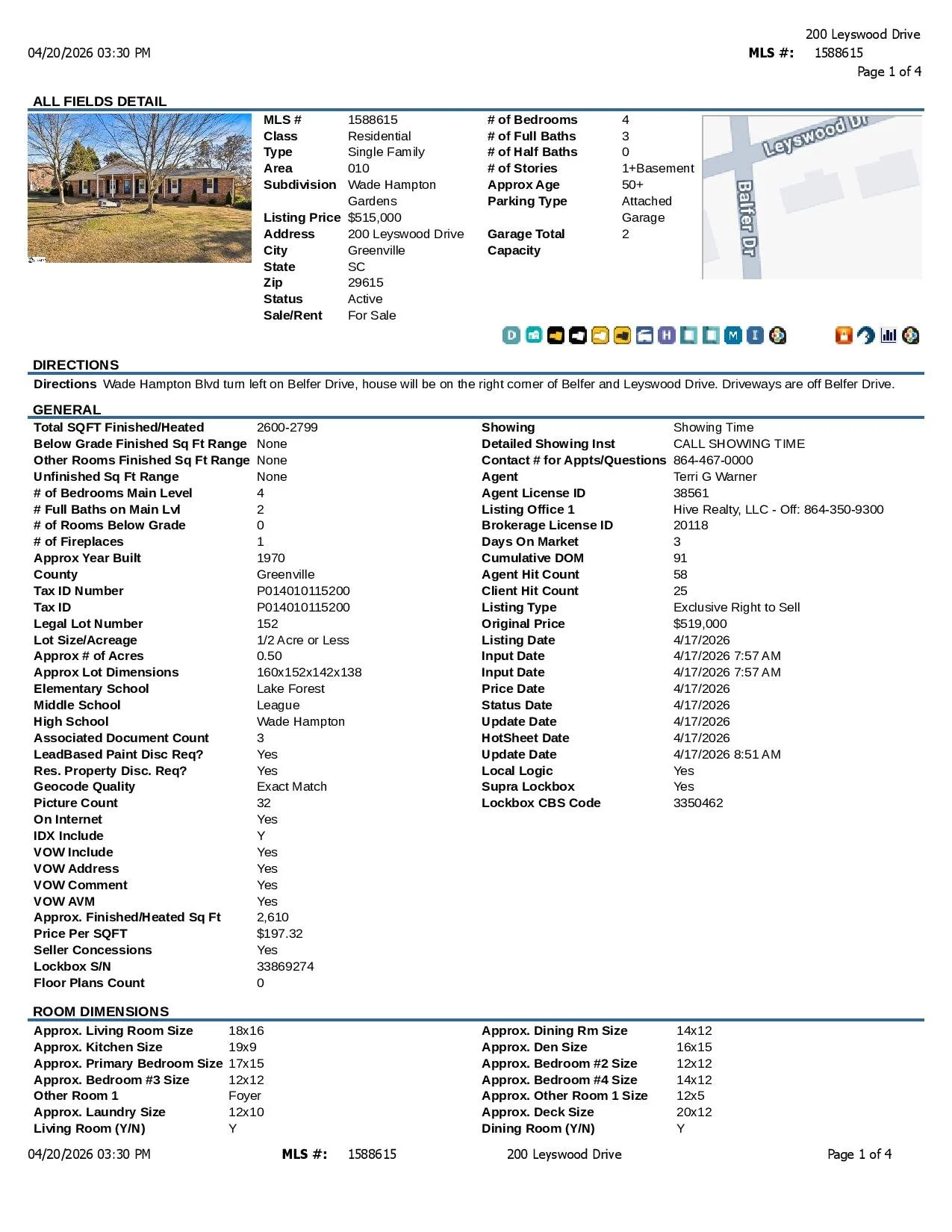 MLS #1588615 - 200 Leyswood Drive, Greenville, SC 29615 - $499,000